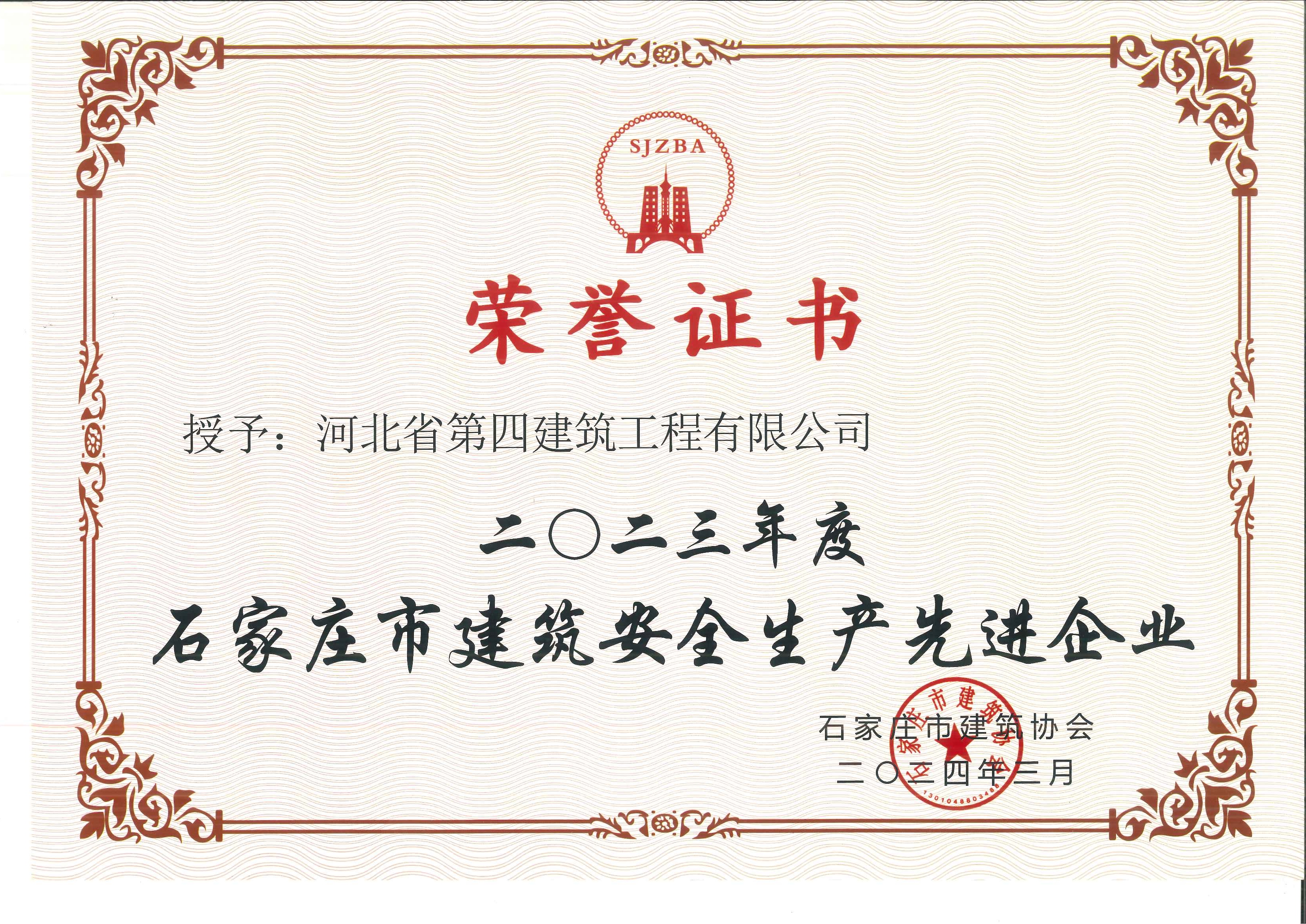 河北四建:2022-2023年石家庄市建筑业AAA级信用企业