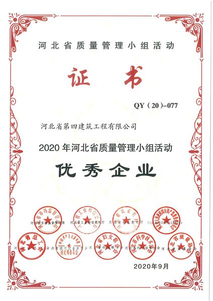 2020年,公司共发布22项QC小组活动成果,其中获得中国建筑业协会Ⅰ类成果1项,Ⅲ类成果2项;获得河北省质量管理协会二等成果6项,优秀成果2项。获得河北省质协建筑施工委员会Ⅰ类成果4项,Ⅱ类成果10项。(质量技术部